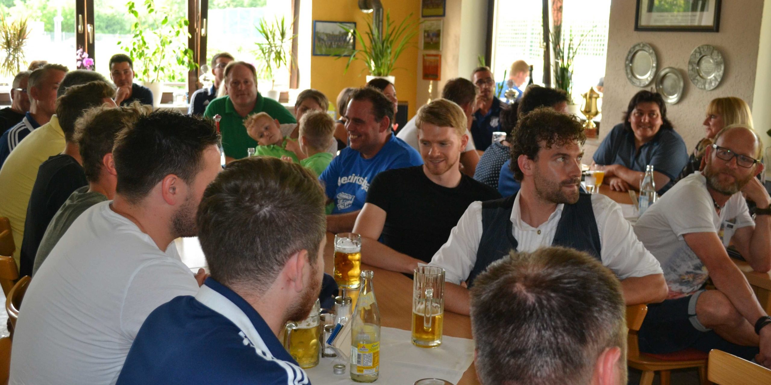 Genau 3 Wochen nach einem der größten Erfolge der Vereinsgeschichte feierten Spieler, Verantwortliche und Fans am vergangenen Samstag im Sportheim noch einmal gebührend die beiden Meisterschaften der Seniorenteams. Im voll besetzten Sportheim begrüßte Vorstand Sigi Heber zunächst die Ehrengäste, Spieler und ihre Partnerinnen, Wirtin Mira sowie die sportliche Leitung. In seiner Rede hob Heber auch noch einmal den großen Anteil der Jugendabteilung der letzten Jahre hervor, schließlich schafften mit Franz Gruber, Stefan Ruder, Jonas Schreiner, Marcel Hochleitner, Bastian Attenberger, Alex Rauscher, Marcel Heinisch, Chris Winzinger und Daniel Vielhuber gleich eine ganze Reihe von Eigengewächsen den Sprung in die Erste Mannschaft. Er wies auch noch einmal auf den tollen Zusammenhalt im Verein hin, der auch eine wichtige Grundlage für den sportlichen Erfolg war. Neben Dankesworten für Spieler und die sportliche Leitung sprach er zudem Trainer Jochen Freidhofer ein großes Lob für dessen Arbeit aus, vor allem die hohe Trainingsbeteiligung seit dessen Amtsübernahme nahm man mit großer Freude zur Kenntnis. Anschließend übergab er das Wort an den 1. Abteilungsleiter Fussball, Stephan Hofmann. Dieser hob gleich zu Beginn ebenfalls die Bedeutung von Trainer Freidhofer hervor, ehe er die erfolgreichen Spielzeiten der beiden Seniorenmannschaften Revue passieren ließ. Er präsentierte dabei die außergewöhnlichen Statistiken der beiden Teams, unter anderem hatte die Erste Mannschaft die beste Abwehr sowie den besten Angriff der Liga, am Ende konnte man trotz des Kopf-an-Kopf Rennens mit TG Straubing mehr als Verdient die Meisterschaft in der Kreisliga-Straubing feiern.