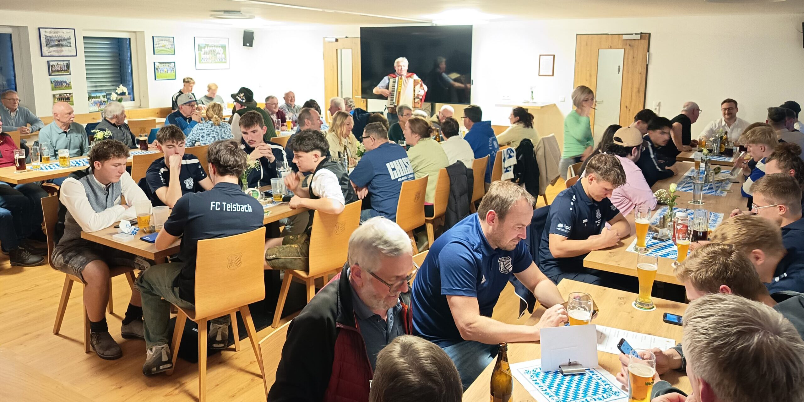 Teisbach. Am vergangenen Samstag fand im Anschluss an das Landesligaspiel zwischen dem FC Teisbach und dem SC Luhe-Wildenau in der guten Stube des Fußballclubs das alljährliche Starkbierfest des FC Teisbach statt. Trotz der äußert unglücklichen 1:3-Niederlage der Weiß- Blauen gegen die Gäste aus der Oberpfalz ließen sich zahlreiche Besucher die gute Stimmung am Abend nicht nehmen. Das Sportheim war gut gefüllt, und man nutzte die Gelegenheit, gemeinsam einen geselligen Abend zu verbringen. Für das leibliche Wohl sorgte das Sportheim-Team mit einer schmackhaften Auswahl an Speisen. Dazu wurden die süffigen Getränke der Brauerei Wittmann ausgeschenkt, die bei den Gästen großen Anklang fanden. Auch heuer durfte das traditionelle Starkbier nicht fehlen: Mit dem „Ergolator“ kam wieder ein kräftiges und zugleich bekömmliches Starkbier zum Ausschank, das bei den Besuchern sehr beliebt war und zum geselligen Beisammensein beitrug. Für die musikalische Unterhaltung sorgte Alleinunterhalter Gustl Weiterschan mit seiner Harmonika. Mit bekannten Liedern und zünftiger Musik animierte er die Gäste zum Mitsingen und sorgte so für einen rundum gelungenen Abend. -dw-