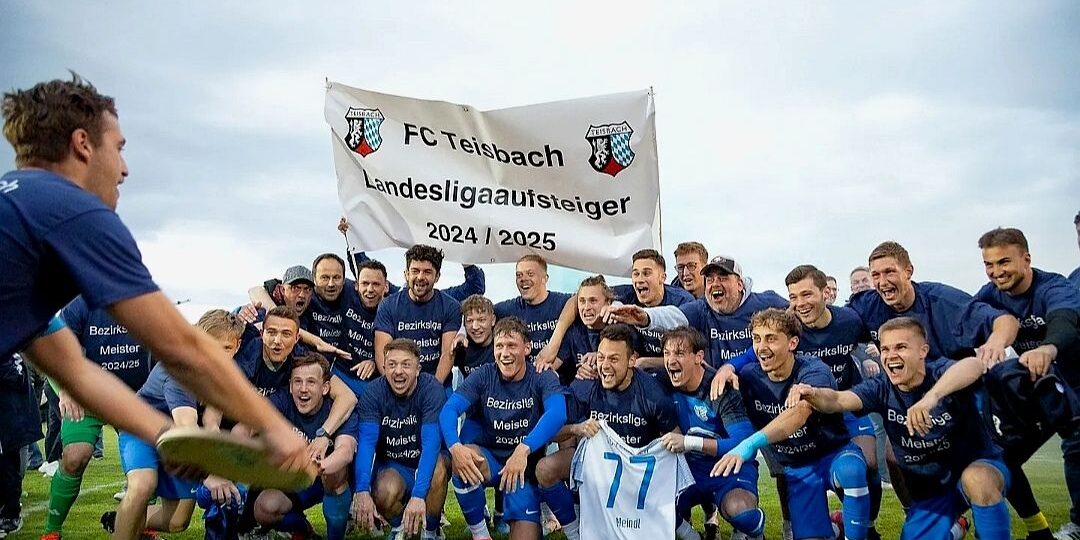 Teisbach// Es ist vollbracht! Am vergangenen Freitagabend gelang der ersten Mannschaft des Teisbacher Fußballclubs der bisher größte Erfolg in der über 100- jährigen Vereinsgeschichte. Durch den 1:0 Auswärtssieg bei der TuS Pfarrkirchen sicherten sich die Weiß-Blauen den Meistertitel in der höchsten niederbayerischen Spielklasse und steigen in die Landesliga auf. Ab der kommenden Saison werden die Gegner, je nachdem in welche Liga die Baumgartl- Elf eingruppiert wird, Spielvereinigung Lam, FC Passau, Spielvereinigung Landshut oder auch FC Garmisch- Partenkirchen heißen. Ganz Fußball- Teisbach steht Kopf, nach Spielende und auch über das ganze Wochenende hinweg wurde die Meisterschaft ausgelassen gefeiert und begossen. Die Vorzeichen hätten am Freitagabend kaum besser sein können. Tolle äußere Bedingungen, mehrere hundert FCT- Fans – teils mit Bussen angereist – und eine Ausgangslage, in der man alles in eigener Hand hatte. Vor weit über 500 Zuschauern war den Teisbacher Jungs dennoch die Nervosität anzumerken, alle Kicker wussten um was es in dieser Partie geht. Pfarrkichen machte seine Sache über die 90 Minuten hinweg ordentlich, nach dem errungenen Klassenverbleib lag der Druck freilich beim Gast. Vor lautstarker Unterstützung seitens der mitgereisten Teisbacher Fans agierten beide Seiten in der Anfangsphase verhalten, keiner wollte den ersten Fehler begehen. Teilweise fehlte dem Gast in diesem Match die sonst so übliche Leichtigkeit. Der erste ernst zu nehmende FC- Abschluss gelang Oliver Gabel erst nach einer halben Stunde, TuS- Goalie Sebastian Baier hielt jedoch sicher. Wenige Minuten später das erste Ausrufezeichen der Hausherren. Nach einem schnell vorgetragenen Angriff verhinderte Teisbachs Markus Vesely die Pfarrkichener Führung. Die bisher beste Möglichkeit hatte Teisbachs Maximilian Huber kurz vor dem Pausenpfiff, sein Abschluss aus kurzer, zentraler Position strich über den Querbalken. Weiter angepeitscht von den Spielern der zweiten und dritten FCT- Mannschaft kam man nach Wiederbeginn mit zunehmender Spieldauer besser auf und erarbeitete sich ein spielerisches Übergewicht. Oliver Gabel prüfte in der 47. Minute erneut Pfarrkirchens Schlussmann, dieser lenkte mit einer Parade den Ball am Tor vorbei. Die vielumjubelte Führung gelang Maximilian Huber nach 69 gespielten Minuten, als er nach einer Eckballsituation den Ball wuchtig zum 1:0 in die Maschen köpfte. In der Schlussviertelstunde verzeichneten beide Seiten noch die ein oder andere Offensivaktion, schlussendlich blieb es nach gut 90 Minuten jedoch beim knappen, aber nicht unverdienten Teisbacher Erfolg, der nach Schlusspfiff bei Spielern, Verantwortlichen und Fans die Dämme brechen ließ. Es gab kein Halten mehr, alle lagen sich in den Armen und feierten einen noch nie dagewesenen Vereinserfolg. Mächtig stolz zeigte sich nach Abpfiff auch Meistercoach Florian Baumgartl, der das Spiel folgendermaßen erlebte: „Unsere Jungs waren anfangs ziemlich angespannt, haben es dann aber überragend gemacht. Die erste Halbzeit war davon geprägt, dass keine der beiden Mannschaften einen Fehler machen wollte. Jeder unserer Kicker wollte das so seriös wie möglich irgendwie runterspielen. So viele größere Chancen hat es in diesem Spiel aber nicht gegeben und als wir die erste größere Möglichkeit haben liegen lassen, ist jeder von uns etwas ins Überlegen gekommen. In der Pause haben sich die Jungs nochmals gegenseitig richtig eingeschworen und haben die zweite Halbzeit dann auch verdient gewonnen. Das Tor muss in so einer Begegnung vermutlich durch eine Standardsituation fallen – aus dem Spiel heraus wäre dies heute wahrscheinlich nicht mehr geschehen. Hut ab vor Pfarrkirchen, das alles gegeben hat – und jetzt ist Feiern angesagt“! Feiern ist sicherlich auch für die kommenden Tage das Stichwort am Teisbacher Erlenweg, völlig zu Recht nach einer grandiosen Saison. Zwischen den Feierlichkeiten kommt es am morgigen Dienstag noch zum niederbayerischen Meisterschaftsduell, wenn man um 18:45 Uhr auf heimischer Anlage mit der DJK Vornbach den Meister der Bezirksliga Niederbayern Ost empfängt.