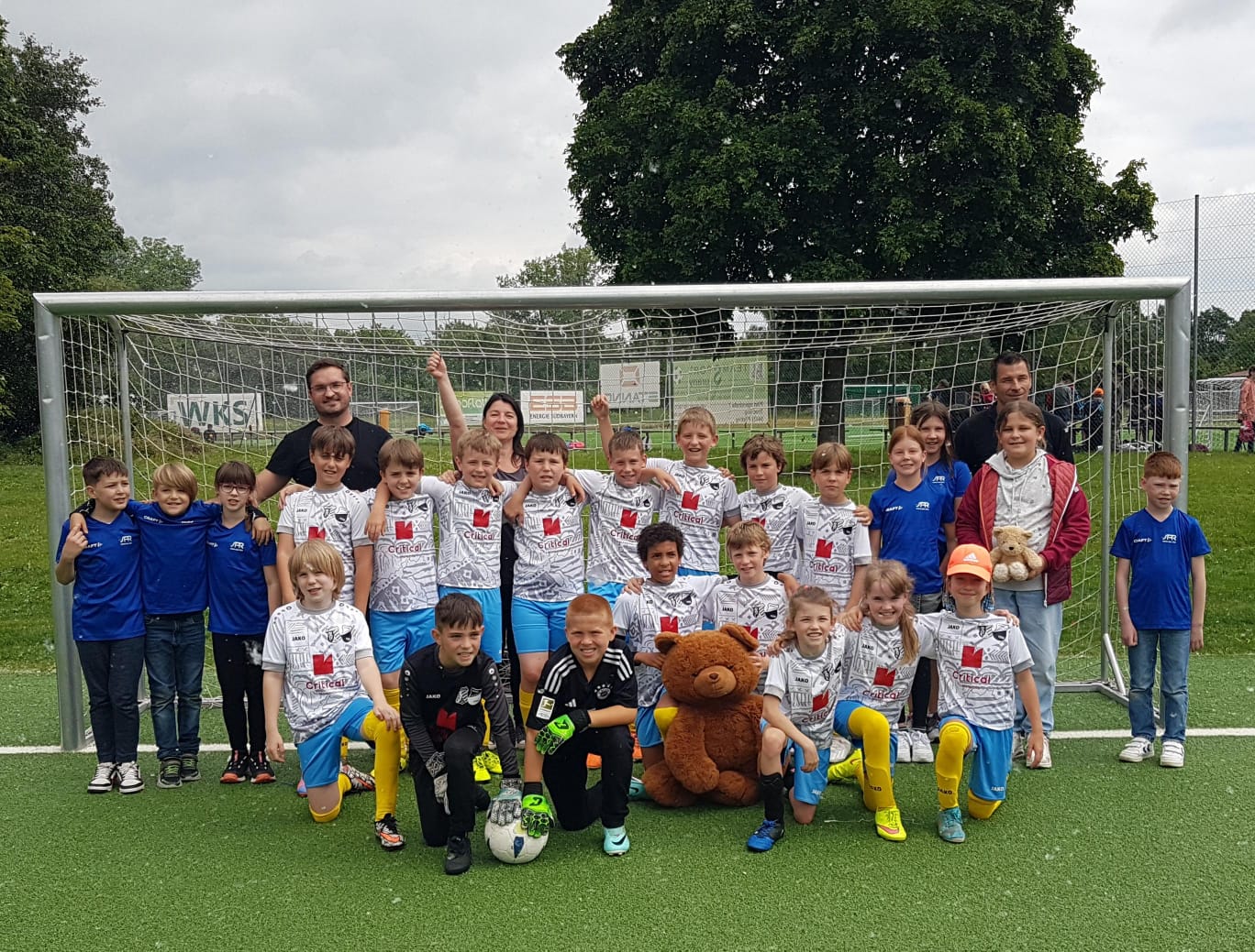 Vergangene Woche war es wieder soweit. Zahlreiche Grundschulen des Landkreises Dingolfing/Landau trafen sich zum Fussball Kreisfinale im Dingolfinger Isarwald Stadion. Es war unter den Klassen eine besondere Stimmung, wollten doch die Kinder ihr Bestes geben und bei den vordersten Plätzen dabei sein. Die 4. Klasse der Teisbacher Grundschule spielte an diesem Tag wieder sehr guten, ansehnlichen Fussball und gewann somit nach vielen spannenden Spielen verdient den Fussball Wettbewerb. Stolz und voller Freude liefen sich die Schüler nach dem Schlusspfiff in die Arme. Die unterstützenden Fans jubelten ebenso lautstark und so fuhr man mit stolz geschwellter Brust, mit Medaille und Urkunde im Gepäck, zurück zum Teisbacher Schulgebäude, wo man mit einem „Jubel-Spalier“ begeistert in Empfang genommen wurde. Jedes Kind bekam auch ein „1. Platz – Gewinner Shirt“ – was auch in den darauffolgenden Tagen stolz getragen wurde und so war die Stimmung noch länger euphorisch und der erstmalige Titelgewinn für die GS Teisbach beim Dingolfinger Kreisentscheid in aller Munde. Auch die Jugendabteilung des FC Teisbach möchte an dieser Stelle ganz herzlich gratulieren und freut sich sehr über so tolle Ergebnisse seiner Jugendspieler auch bei schulischen Wettbewerben. Kommen doch sehr viele Spieler aus den eigenen Reihen, was den Verein sehr stolz macht.