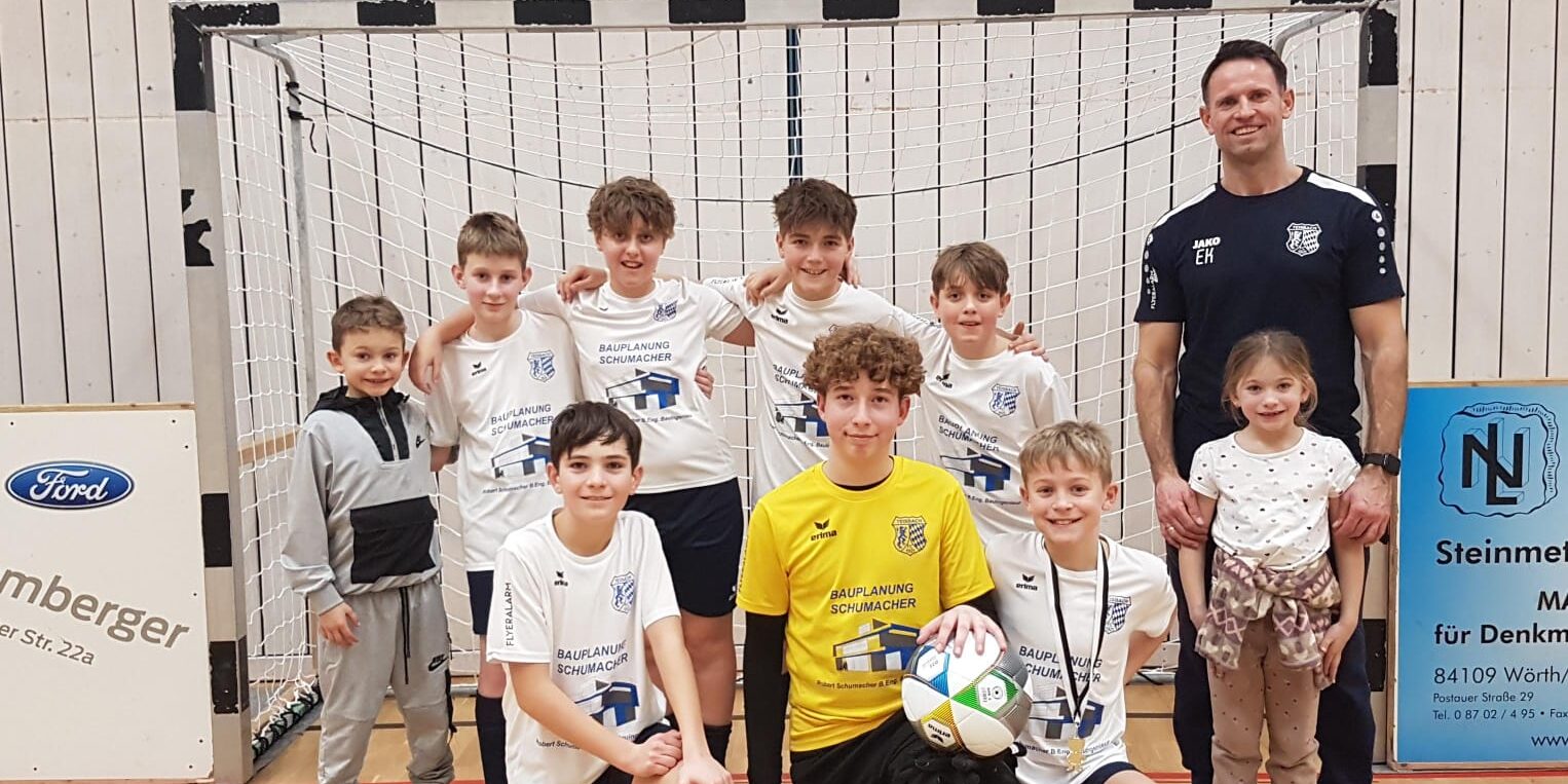 Am vergangenen Wochenende konnte sich die D1 Mannschaft des FC Teisbach einen erfolgreichen Tuniersieg erspielen. Beim Gastgeber des SV Wörth spielte man beim „Isarkies Cup“ gegen die Mannschaften aus Essenbach, Landshut-Auloh, Weng, Dingolfing und natürlich auch gegen die Jungs des SV Wörth. Mit einem tollen Torergebniss von 13 Treffern sicherte man sich verdient den 1. Platz in der Gesamtwertung. Ansehnlich wurde hier um die Plätze mit schönen Spielzügen gekämpft und die Spieler des FC Teisbach überzeugten hierbei mit einer sehr guten Tagesleistung. Zum Schlusspfiff beim entscheidenden Spiel gegen Landshut-Auloh konnten sich die Spieler im Siegesjubel gegenseitig feiern. Bei der Siegerehrung nahmen die Jungs einen neuen Spielerball entgegen und freuten sich über die Auszeichnung beim Jugendhallenfussballspektakel des Gastgebers SV Wörth.